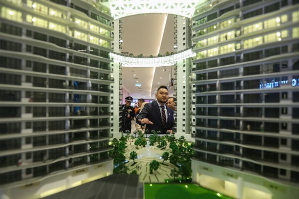 Duli Yang Teramat Mulia (DYTM) Raja Muda Selangor Tengku Amir Shah berkenan melihat replika bangunan Datum Jelatek selepas merasmikan Pusat Beli Belah Datum Jelatek di Jalan Jelatek, Ampang Jaya pada 10 Disember 2022. Foto HAFIZ OTHMAN/SELANGORKINI