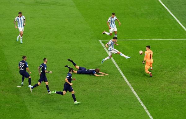 Pada minit ke-69, Alvarez sekali lagi menyumbat gol hasil hantaran cantik Messi yang berjaya menggelecek pertahanan Croatia.