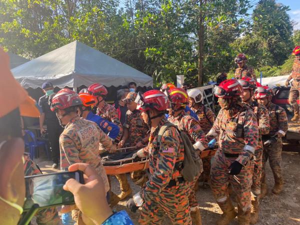 BATANG KALI, 24 DIS: Mayat terakhir mangsa tragedi tanah runtuh di tapak perkhemahan Father’s Organic Farm, Gohtong Jaya di sini, ditemukan anggota operasi mencari dan menyelamat (SAR), petang ini.