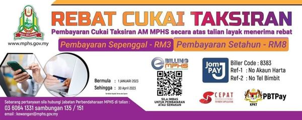 MPHS berkata pembayar cukai boleh membuat bayaran secara dalam talian di https://mphs.gov.my sama ada sekali (setahun) atau dua penggal.