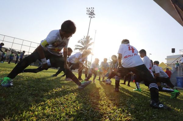 Peserta bola sepak bawah 12 tahun melakukan pemanas badan sebelum sepak mula Kejohanan Piala Budak Kampung 2023 DUN Paya Jaras di Stadium Mini Paya Jaras, Sungai Buloh. Pada 14 Januari 2023..Foto MOHD YUSNI ARIFFIN/SELANGORKINI