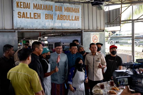 Terdahulu Perdana Menteri meluangkan masa menyantuni rakyat di Negeri Sembilan dan menjamu selera rojak dan nasi goreng cina di Warung Pak Salleh di sini.
