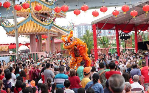 Orang ramai melihat persembahan tarian singa sempena Pesta Budaya dan Warisan Chap Goh Mei Kajang di Jalan Mendaling, Hulu Langat pada 5 Februari 2023. Foto AHMAD ZAKKI JILAN/SELANGORKINI