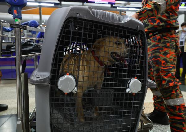 SEPANG, 9 FEB: Dua ekor anjing pengesan (K9) Jabatan Bomba dan Penyelamat Malaysia (JPBM), Denti dan Frankie, menjadi sandaran misi mencari dan menyelamat (SAR) mangsa gempa bumi di selatan Turkiye.