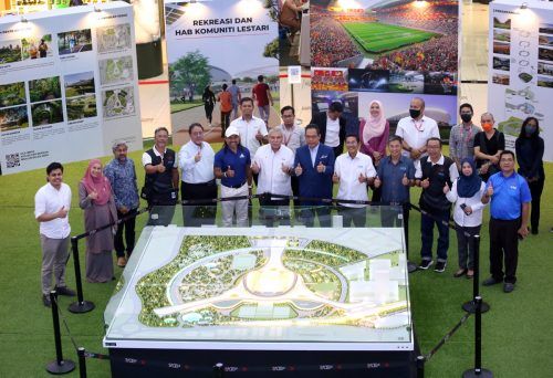 Pengurus Besar unit khas Menteri Besar Selangor (Pemerbadanan) atau MBI Datuk Ir Ruslan Abdul Aziz (lima, kanan) bersama Datuk Bandar Shah Alam Dr Nor Fuad Abdul Hamid (enam, kanan) dan Presiden Eksekutif Malaysia Resources Corporation Berhad (MRCB) Datuk Dell Akbar Khan Hyder Khan (tengah) bergambar bersama kakitangan mereka pada hari terakhir pameran pembangunan semula Kompleks Sukan Shah Alam (KSSA) di SACC Mall, Shah Alam pada 10 Februari 2023. Foto AHMAD ZAKKI JILAN/SELANGORKINI