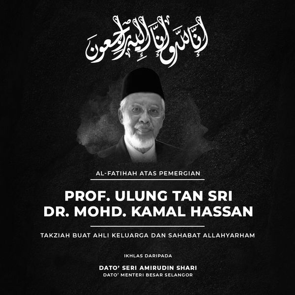 “Innalillahi wainna ilaihirojiun. Takziah diucapkan kepada keluarga dan sahabat Prof Ulung Tan Sri Dr Mohd Kamal Hassan. Al-Fatihah,” tulis Dato’ Seri Amirudin Shari di Twitter.