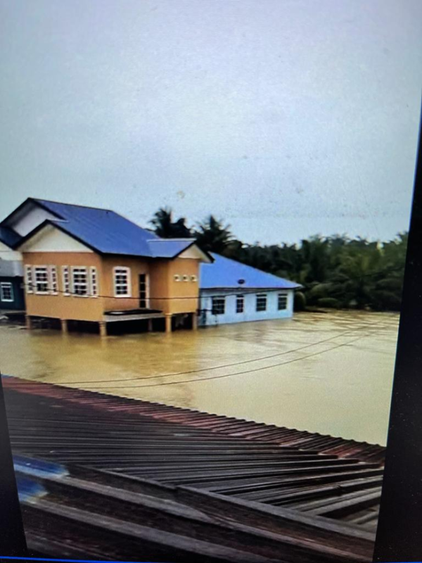 "Saya mohon bantuan segera untuk selamatkan saya sekeluarga atas bumbung ini. Tolong hantar bantuan helikopter dengan kadar segera. Kami sehelai sepinggang, tiada makanan minuman dan basah akibat hujan lebat.