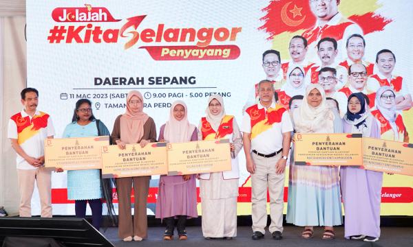 Majlis simbolik penyerahan bantuan berkenaan disempurnakan EXCO Pembangunan Usahawan Rodziah Ismail pada program Jelajah Kita Selangor Penyayang (JKSP) Sepang hari ini.