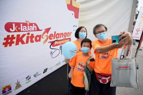 Thye Huat Lai bersama isteri Grace Mui Dan anak Thye Qing Le berswafoto ketika Jelajah Kita Selangor Penyayang dun Sepang di Pusat Penjaja Taman Putra Perdana, Sepang pada 11 Mac 2023. Foto NUR ADIBAH AHMAD IZAM/SELANGORKINI