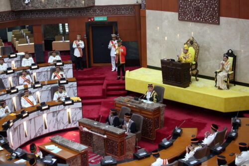 Duli Yang Maha Mulia (DYMM) Sultan Selangor Sultan Sharafuddin Idris Shah Alhaj dan DYMM Tengku Permaisuri Selangor Tengku Permaisuri Norashikin mengaminkan doa yang dibaca oleh Mufti Selangor Sahibus Samahah Dato’ Dr Anhar Opir selepas merasmikan persidangan Mesyuarat Pertama Penggal Keenam Dewan Negeri Selangor (DNS) Keempat Belas Tahun 2023 di Bangunan Annex, Shah Alam pada 13 Mac 2023. Foto AHMAD ZAKKI JILAN/SELANGORKINI