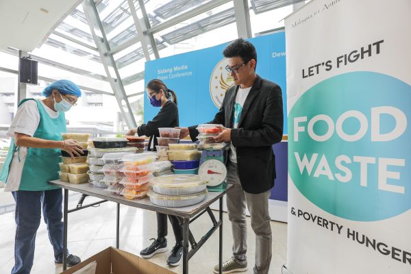 Pengasas syarikat What A Waste, Alvin Chen (kanan) bersama kakitangannya menimbang dan mengumpul lebihan makanan ketika sidang media mengenai kerjasama dengan syarikat What A Waste di Bangunan Annex, Shah Alam pada 17 Mac 2023. Foto FIKRI YUSOF/SELANGORKINI
