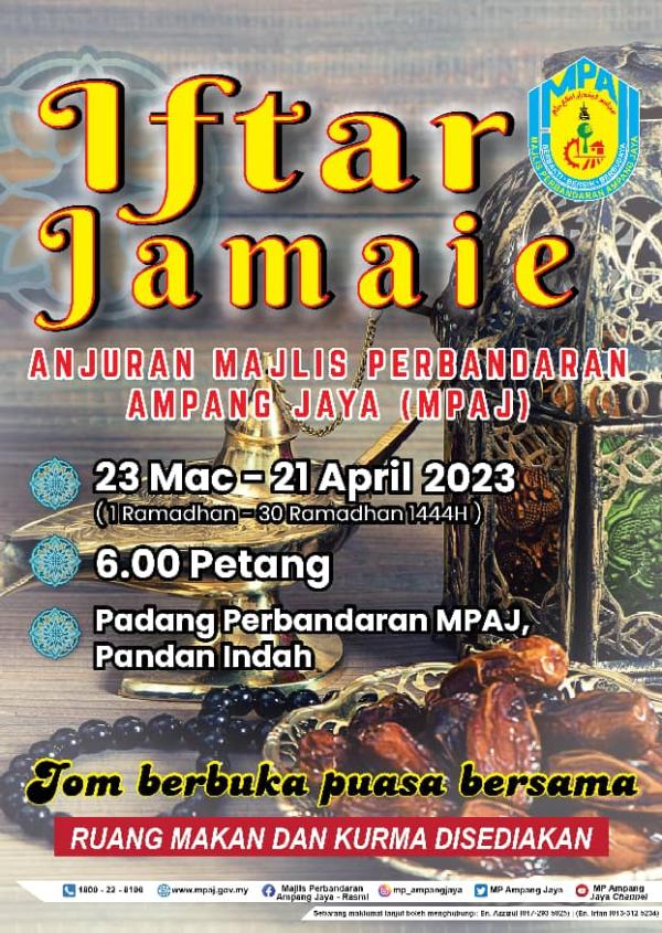 SHAH ALAM, 23 MAC: Majlis Perbandaran Ampang Jaya (MPAJ) mempelawa penduduk sekitar Ampang Jaya ke program Iftar Jamaei sepanjang Ramadan ini.