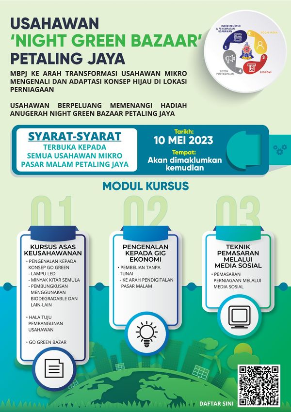 Pihak berkuasa tempatan itu memaklumkan kursus Usahawan Night Green Baazar Petaling Jaya itu akan diadakan pada 10 Mei depan di lokasi yang akan diberitahu kemudian.