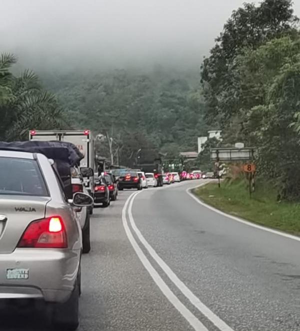 GUA MUSANG, 4 APRIL: Hari pertama penutupan jalan utama Gua Musang-Kuala Lipis menyebabkan aliran trafik sesak selain turut menyebabkan sebahagian pelajar Sekolah Maahad Muhammadi lewat hadir ke sekolah.