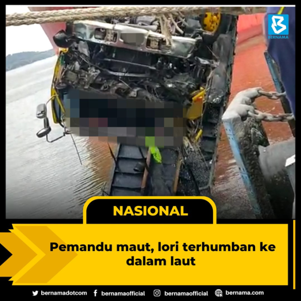"Sebuah lori 10 tan terjatuh ke dalam laut pada kedalaman kira-kira 11 meter. Kapal yang berdekatan pelabuhan telah ditarik bagi memudahkan operasi penyelamatan dilakukan.