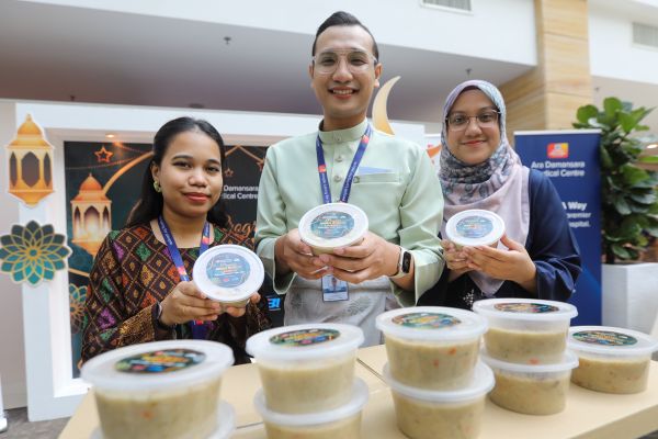 Kakitangan Pusat Perubatan Ara Damansara menunjukkan bubur lambuk ketika program Infak Bubur Lambuk Ara Damansara Medical Centre (ADMC) kepada Menteri Besar Selangor (Pemerbadanan) atau MBI di Pusat Perubatan Ara Damansara, Shah Alam pada 5 April 2023. Foto HAFIZ OTHMAN/SELANGORKINI