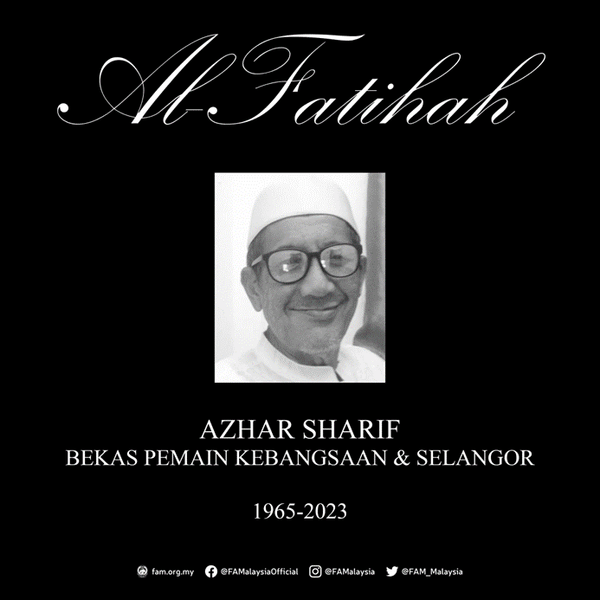 KUALA LUMPUR, 6 APRIL: Bekas pemain bola sepak kebangsaan era 80-an Azhar Sharif meninggal dunia di Hospital Selayang di sini 4.30 pagi tadi.