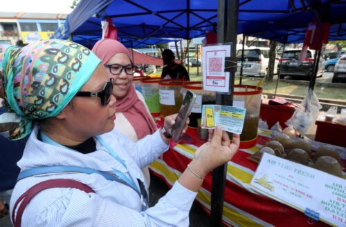 Pengunjung memasukkan kod promosi RM10 yang diberi secara percuma oleh Majlis Bandaraya Shah Alam (MBSA) ketika membeli juadah di bazar Ramadan Rahmah Seksyen 19, Shah Alam pada 12 April 2023. Foto AHMAD ZAKKI JILAN/SELANGORKINI
