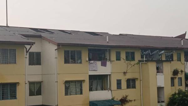 SHAH ALAM, 18 APRIL: Majlis Perbandaran Kajang (MPKj) membaik pulih bumbung 18 unit rumah pangsa kos rendah yang rosak akibat ribut di Kajang Ahad lalu.