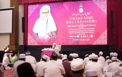 Tokoh Ulama dari Pattani, Baba Ismail Sepanjang Al-Fathoni menyampaikan pengajian secara membaca sempena Talaqqi Kitab Ihya Ulumuddin tulisan Imam al-Ghazali sempena Festival Turath Islami Selangor di Kediaman Rasmi Dato' Menteri Besar Selangor, Shah Alam pada 1 Mei 2023. Foto AHMAD ZAKKI JILAN/SELANGORKINI