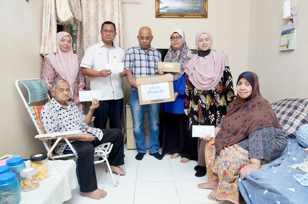 Terdahulu, Mohamad Zahri bersama wakil Pertubuhan Keselamatan Sosial (Perkeso) Selangor menyantuni keluarga Allahyarham di rumah mereka dekat Taman Sri Menegon di sini.
