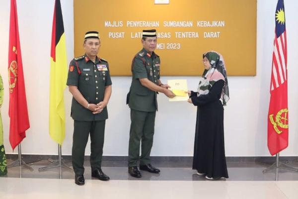 Sumbangan berkenaan diserahkan oleh Juruiring Tentera Darat kepada Yang di-Pertuan Agong, Brig Jen Datuk Sharizan Wan Chik, kepada waris mangsa di Pusat Latihan Asas Rekrut Tentera Darat (PUSASDA) Kem PUSASDA Port Dickson, Negeri Sembilan, semalam.