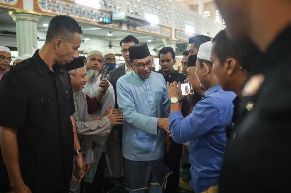 Selepas solat, Anwar turut beramah mesra dan bersalaman bersama jemaah serta berswafoto sebelum beredar meninggalkan masjid sekitar 2.10 petang.