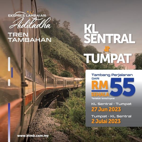 KUALA LUMPUR, 9 JUN: Jualan tiket tambahan bagi perkhidmatan Tren Ekspres Lambaian Aidiladha (ELA) ke Pantai Timur sempena Hari Raya Aidiladha dibuka mulai 8 malam ini bagi memberi peluang kepada yang tidak berkesempatan mendapatkan tiket sebelum ini.