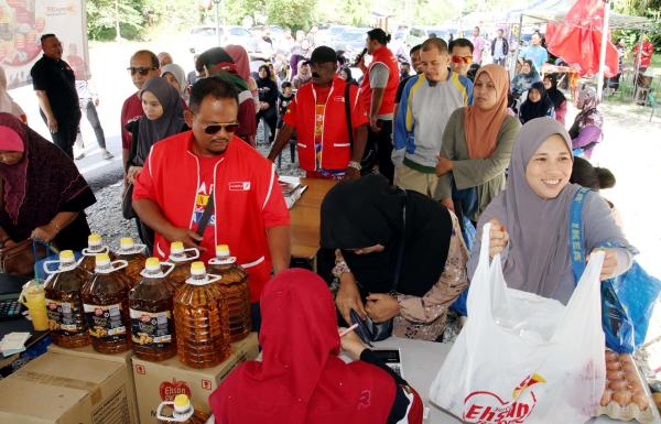 Orang ramai membeli barangan keperluan dapur yang dijual murah berbanding harga pasaran pada program Jualan Ehsan Rahmah (JER) peringkat DUN Sungai Ramal di Sungai Tangkas, Kajang pada 12 Jun 2023. Foto AFENDI MOHAMED/SELANGORKINI[/caption]