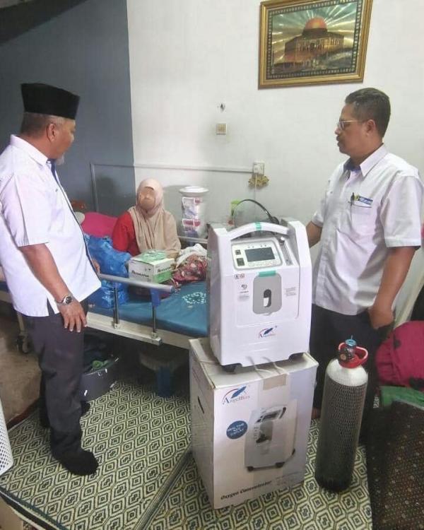 Agensi itu menyumbangkan set mesin pernafasan lengkap tangki gas oksigen bagi memudahkan wanita berkenaan membuat rawatan kecemasan di rumah.