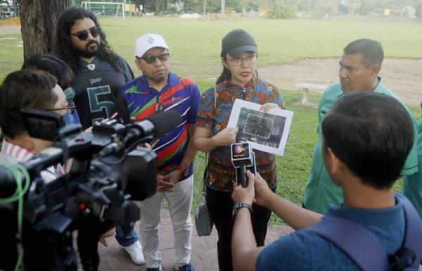 Terdahulu Mei Sze ditemani Ahli Majlis Bandaraya Subang Jaya Ar Kamaruk Hisham Yeop Hashim turun ke lokasi bagi meninjau kerja naik taraf padang berkenaan di sini, hari ini.
