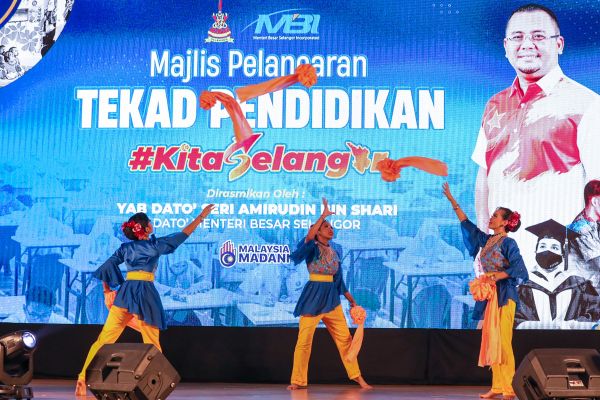 Persembahan tarian Poa Gan Wu oleh pelajar Sekolah Menengah Kebangsaan Perempuan Sri Aman Petaling Jaya ketika majlis pelancaran Tekad Pendidikan Kita Selangor (PTRS) di Dewan Raja Muda Musa, Kompleks Belia dan Kebudayaan Negeri, Shah Alam pada 18 Jun 2023. Foto FIKRI YUSOF/SELANGORKINI