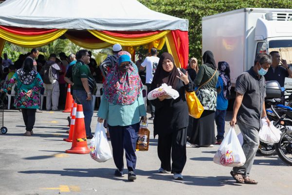Orang ramai tidak melepaskan peluang membeli barangan asas yang dijual murah berbanding harga pasaran sempena Jualan Ehsan Rahmah (JER) DUN Lembah Jaya di Perkarangan Dewan Orang Ramai Taman Ampang Indah, Ampang Jaya pada 19 Jun 2023. Foto FIKRI YUSOF/SELANGORKINI[/caption]