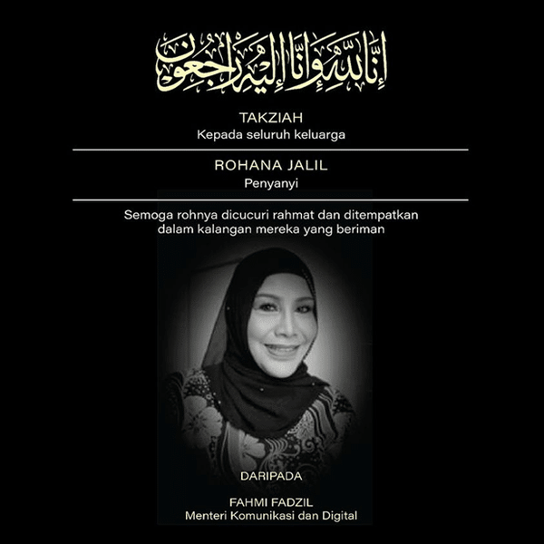 "Sedih mendengar berita kehilangan penyanyi terkenal tanah air, Rohana Jalil.