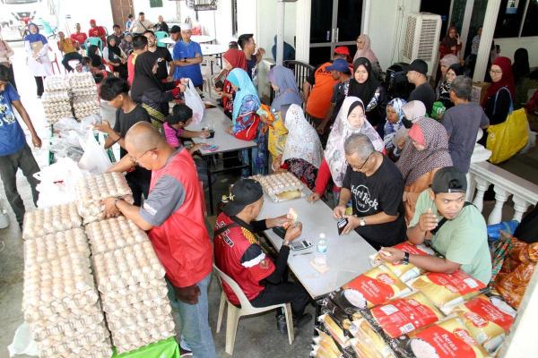 Penduduk membeli barangan keperluan dapur pada program Jualan Ehsan Rakyat (JER) DUN Seri Serdang di Surau Nurul Huda, Kampung Kenangan, Subang Jaya pada 21 Jun 2023. Foto AFENDI MOHAMED/SELANGORKINI[/caption]