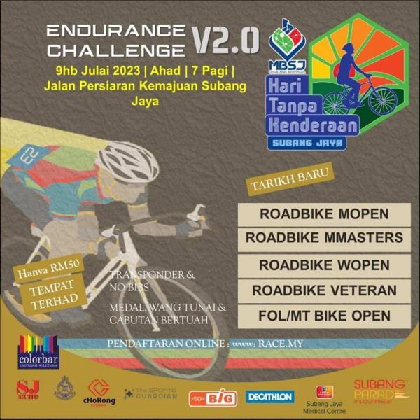 Endurance Challenge V2.0 terbuka kepada semua dan dibahagikan kepada lima kategori iaitu terbuka lelaki, master lelaki, veteran, terbuka wanita untuk kategori basikal jalan raya dan kategori terbuka untuk kategori basikal lipat atau gunung.