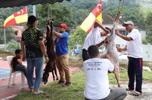 Pemuda Perpaduan Ampang bergotong-royong melapah daging korban pada Majlis Qurban Perpaduan Pemuda Ampang di Dewan Taman Mulia Jaya, Ampang Jaya pada 30 Jun 2023. Foto MOHD YUSNI ARIFFIN/SELANGORKINI