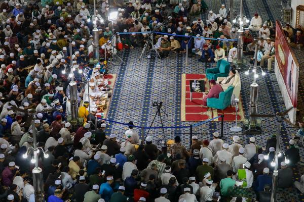 Orang ramai mendengar Daurah Afkar Ihya Ulumuddin karya Imam al-Ghazali disampaikan oleh bekas Mufti Besar Mesir, Prof Dr Ali Jum’ah ketika Festival Turath Islami Selangor di Masjid Sultan Salahuddin Abdul Aziz Shah, Shah Alam pada 21 Mei 2023 . Foto FIKRI YUSOF/SELANGORKINI[/caption]