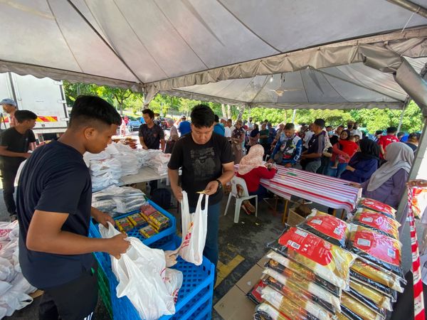 Jualan murah itu menawarkan ayam standard RM10 seekor, daging pejal beku (RM10/pek), telur gred B (RM10 sepapan), ikan kembung (RM6/pek), minyak masak lima kilogram (RM25) dan beras lima kilogram (RM10).