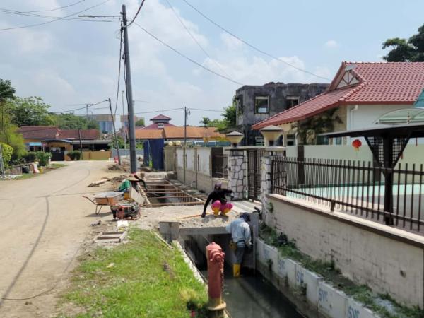 Tony Leong Tuck Chee menjelaskan pelaksanaan projek yang kini mencapai kemajuan 50 peratus membabitkan pendalaman dan pelebaran parit sedia ada di kawasan berkenaan bagi mengelak limpahan air.