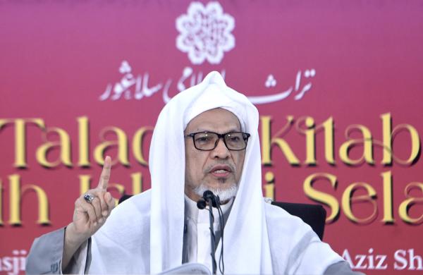 Tokoh ulama dari Pattani Baba Ismail Sepanjang Al-Fathoni menyampaikan pengajian secara membaca sempena talaqqi kitab Ihya Ulumuddin tulisan Imam al-Ghazali pada Festival Turath Islami Selangor di Kediaman Rasmi Dato’ Menteri Besar Selangor, Shah Alam pada 1 Mei 2023. Foto HAFIZ OTHMAN/SELANGORKINI[/caption]