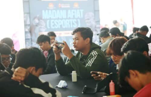 Golongan remaja meluangkan masa bermain permainan e-sport sempena pelancaran Madani Afiat dan Gotong Royong Mega Perangi Aedes 1.0 One Hour Malaysia Clean Up di Dewan Rakyat Batu Caves, Gombak pada 9 Julai 2023. Foto AHMAD ZAKKI JILAN/SELANGORKINI