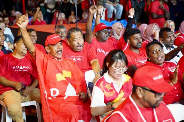 Program yang berlangsung di tapak parkir pekan Kuala Selangor menyaksikan kehadiran penyokong yang terdiri pelbagai kaum dan peringkat usia.