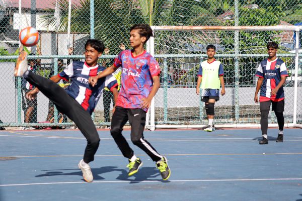 Pasukan Kemek Pangkah menetang Pasukan Wira United A ketika Kejohanan Futsal Piala Harapan Bawah 20 Tahun anjuran DUN Sungai Tua di Kampung Sungai Kertas Gombak pada 16 Julai 2023.