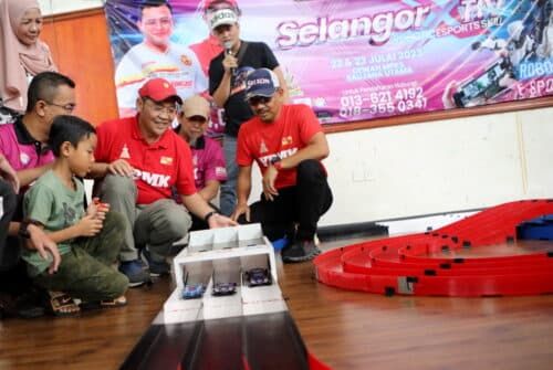 EXCO Sukan Mohd Khairuddin Othman melepaskan perlumbaan kereta tamiya pada majlis perasmian Kemahiran e-Sukan Robotik XTIV Selangor 2023 fasa 2 di Dewan Majlis Daerah Kuala Selangor (MDKS) Saujana Utama, Kuala Selangor pada 22 Julai 2023. Foto MOHD YUSNI ARIFFIN/SELANGORKINI