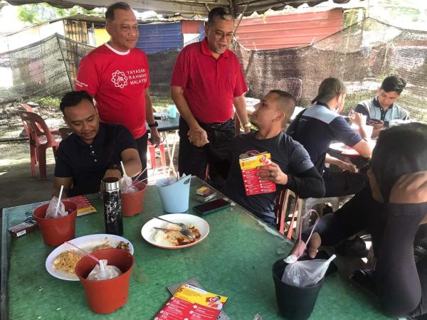 Calon Pakatan Harapan Dewan Undangan Negeri Sungai Ramal Mazwan Johar bertemu orang ramai di program Jualan Ehsan Rahmah di Bandar Teknologi Kajang, Hulu Langat pada 2 Ogos 2023. Foto FITRI HAZIM HAZAM /SELANGORKINI[/caption]