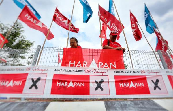 Jentera Pakatan Harapan (HARAPAN) giat memasang kain rentang dan bendera di sepanjang jalan menuju ke Selayang Segar pada 5 Ogos 2023. Foto MOHD YUSNI ARIFFIN/SELANGORKINI
