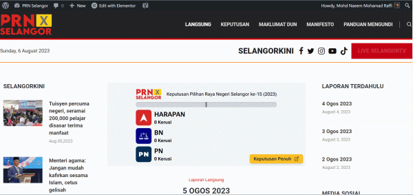 SHAH ALAM, 6 OGOS: Media Selangor Sdn Bhd (Media Selangor) membawakan perkembangan terkini pilihan raya negeri (PRN) melalui portal khas termasuk keputusan masa nyata setiap Dewan Undangan Negeri (DUN) sehingga 12 Ogos.
