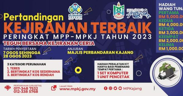 SHAH ALAM, 16 OGOS: Majlis Perbandaran Kajang (MPKj) mempelawa taman perumahan di bawah pentadbirannya menyertai Pertandingan Kejiranan Terbaik peringkat Majlis Perwakilan Penduduk 2023.