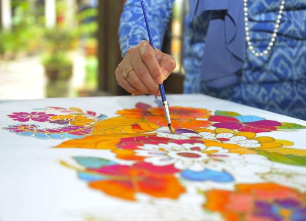 "Kami menyediakan batik Malaysia alternatif daripada bahan tanah liat dengan menggunakan teknik sutera saring bermotifkan bunga raya dan belang Harimau Malaya bagi kemeja yang dipakai barisan Jemaah Menteri dan tetamu kehormat.